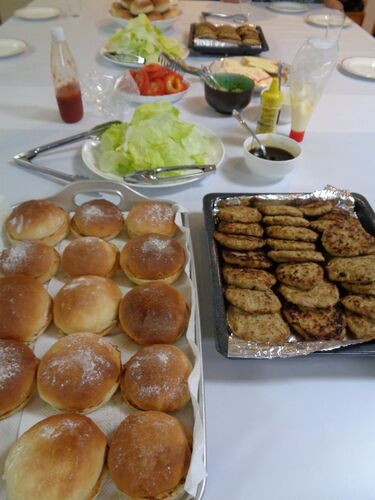 昨日はゲスト・メッセンジャーとして、 湯浅牧師(大宮教会)を迎えてのJC Cafe でした。 湯浅牧師が牧師になる前の1年間、今年の3月まで一緒に礼拝をささげていたので、 半年ぶりの再会でした。 昨日のメニューは、手作りハンバーガー。 2個、3個とおかわり…
